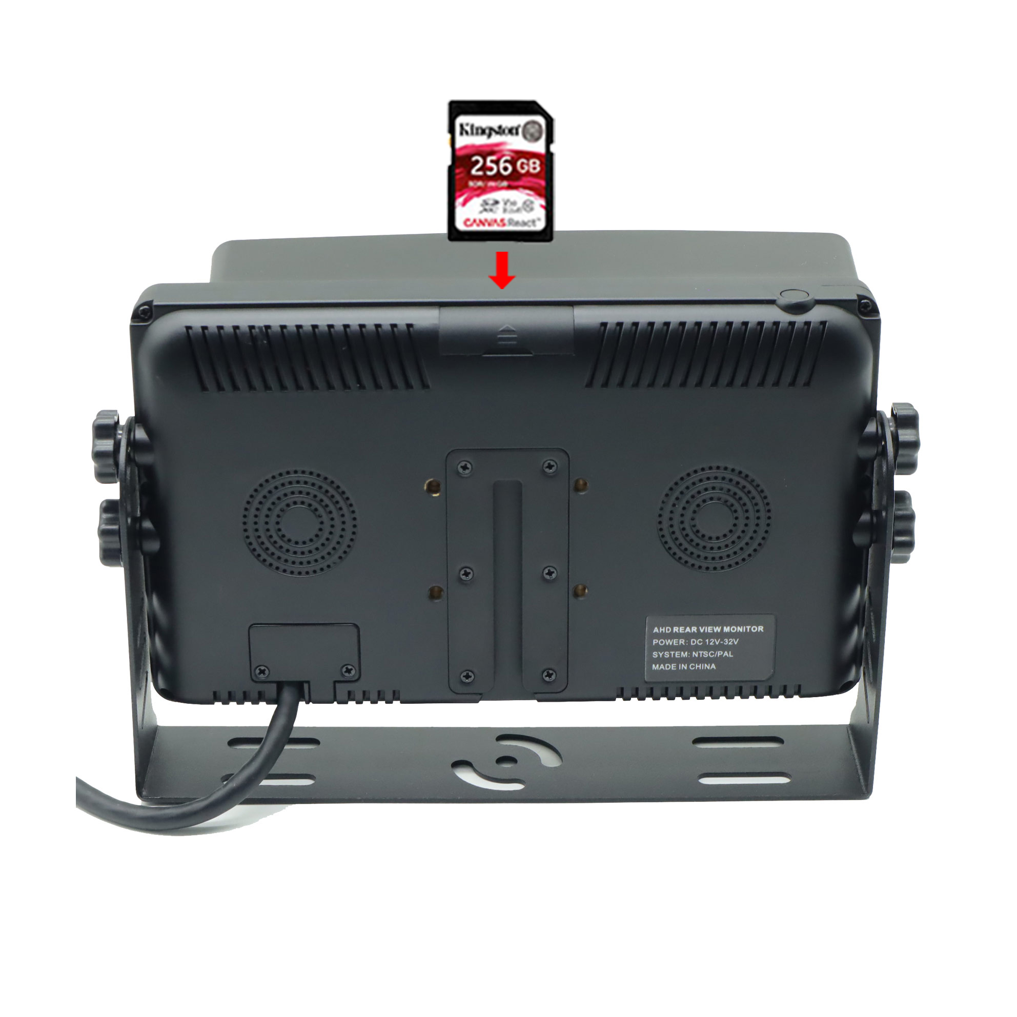 Carleader 7palcový 4CH AHD vstupy Quad View Display Monitor podporuje funkci nahrávání DVR, se slotem pro kartu SD na zadní straně monitoru, maximální kapacita je až 256 GB. Funkce s funkcí nahrávání smyčky, mohou automaticky nahrávat video z kamery a přehrávat.